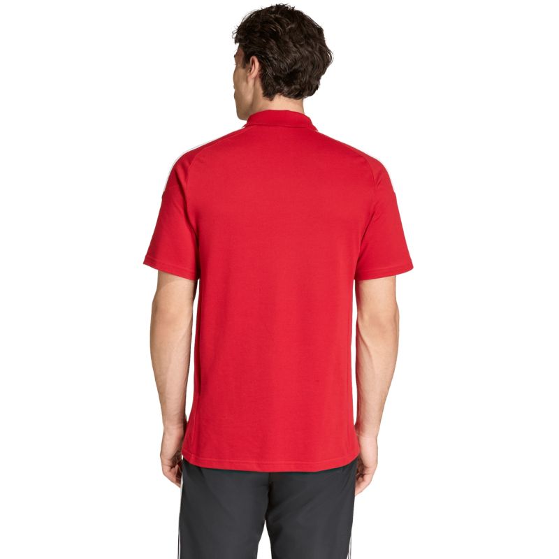 Koszulka męska adidas Tiro 26 League Polo czerwona KF3400 Męska koszulka adidas sprawdzi się gdy odpoczywasz poza linią boczną boiska lub wyjeżdżasz z drużyną na kolejny mecz. Miękki materiał łączący bawełnę oraz poliestrowe włókna. Paski na ramionach. Wstawki na klatce piersiowej. Wyszywane logo na piersi. Model pochodzący z linii Tiro. Kołnierzyk i listwa z guzikami. Standardowy krój. Materiał: 70% bawełna, 30% poliester