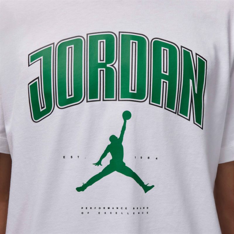 Na piersi umieszczono napis Jordan oraz logo Jumpman, które wyraźnie akcentują przynależność do kultowej linii Jordan.