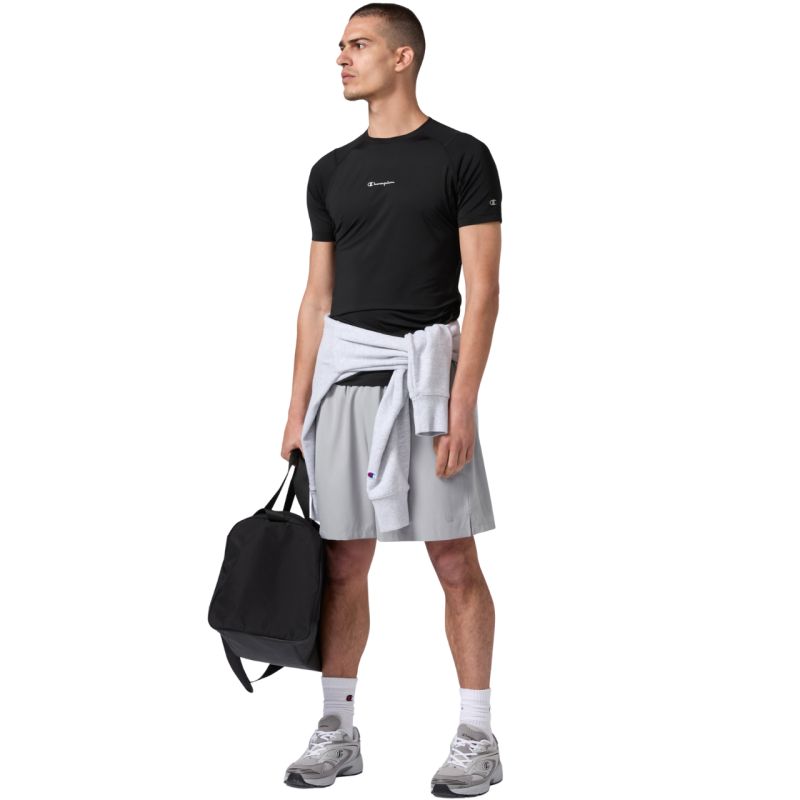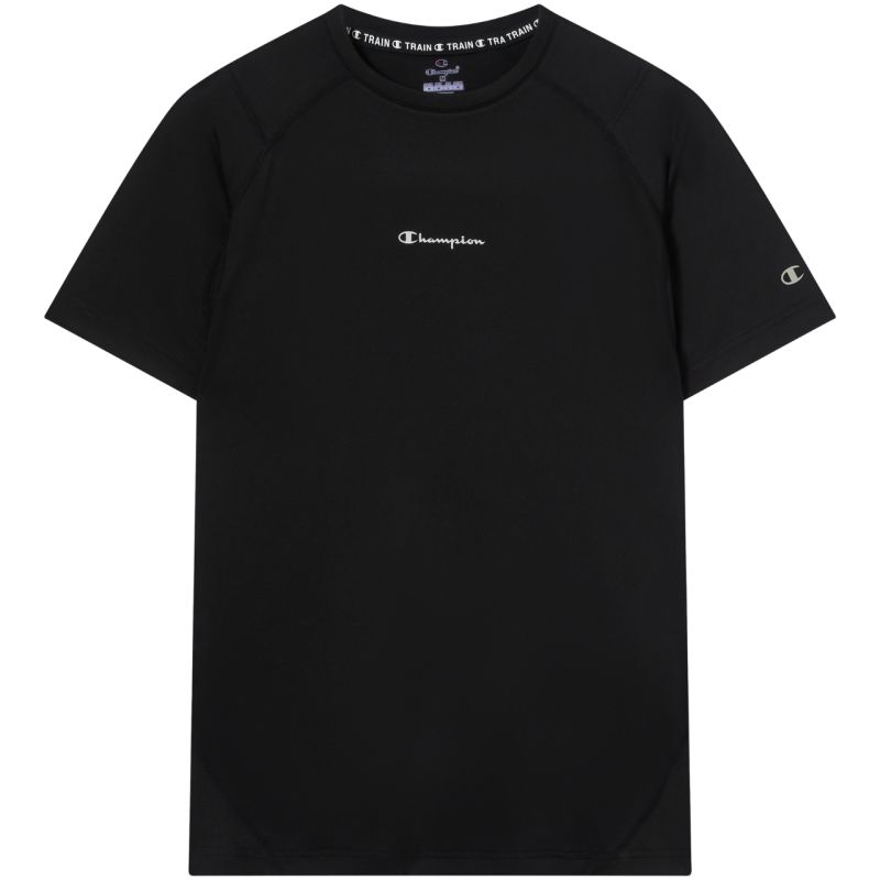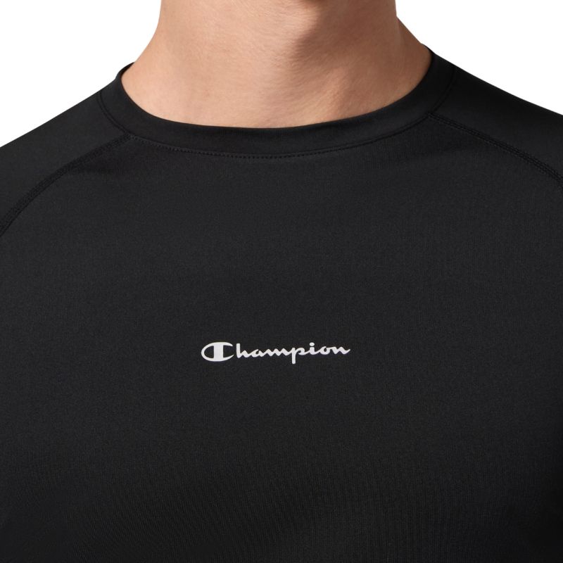 Koszulka męska Champion SS Tee czarna 221381 KK001 Koszulka męska Champion to kompresyjny model treningowy wykonany z elastycznej dzianiny, który dopasowuje się do sylwetki i wspiera mięśnie podczas wysiłku. Technologia Quick Dry odprowadza wilgoć, a oddychający panel na plecach poprawia wentylację. Zastosowanie Life Natural pomaga ograniczyć powstawanie nieprzyjemnych zapachów, zapewniając dłuższą świeżość. Materiał: 84% poliester, 16% elastan