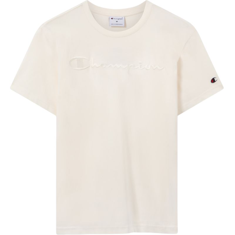 Koszulka męska Champion SS Tee kremowa 220273 YS084 Koszulka dla mężczyzn Champion sprawdzi się podczas codziennego użytkowania. Regularny krój. Niewielkie logo na rękawie. Duże logo na klatce piersiowej. Miękki w dotyku materiał. Materiał: 100% bawełna