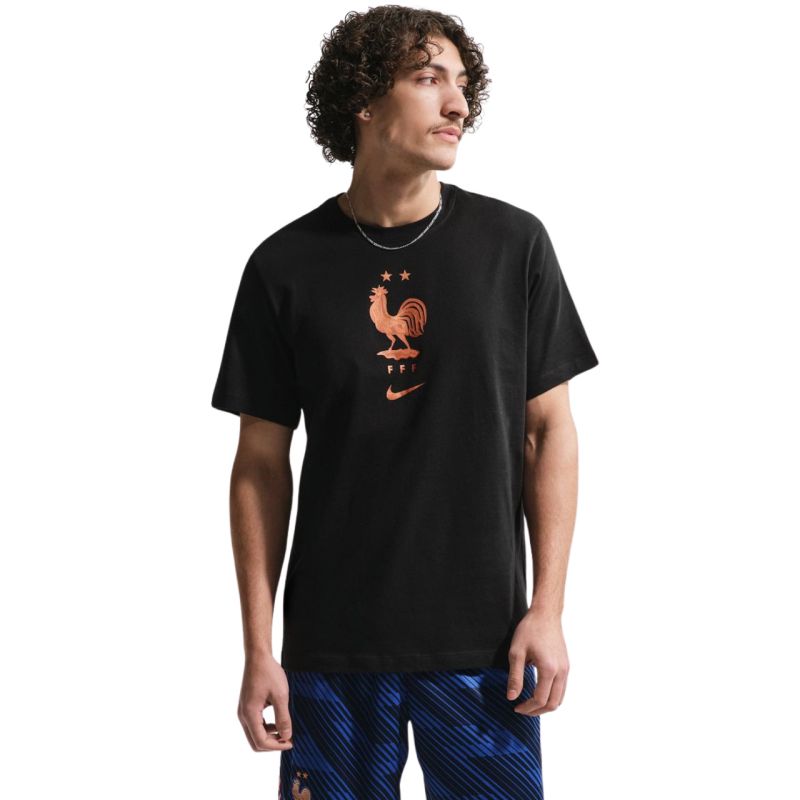 Koszulka męska Nike FFF Soccer czarna IH2181 010 Koszulka piłkarska Nike FFF przeznaczona dla mężczyzn sprawdzi się na co dzień. Wykonana w całości z bawełny. Standardowy krój. Materiał: 100% bawełna