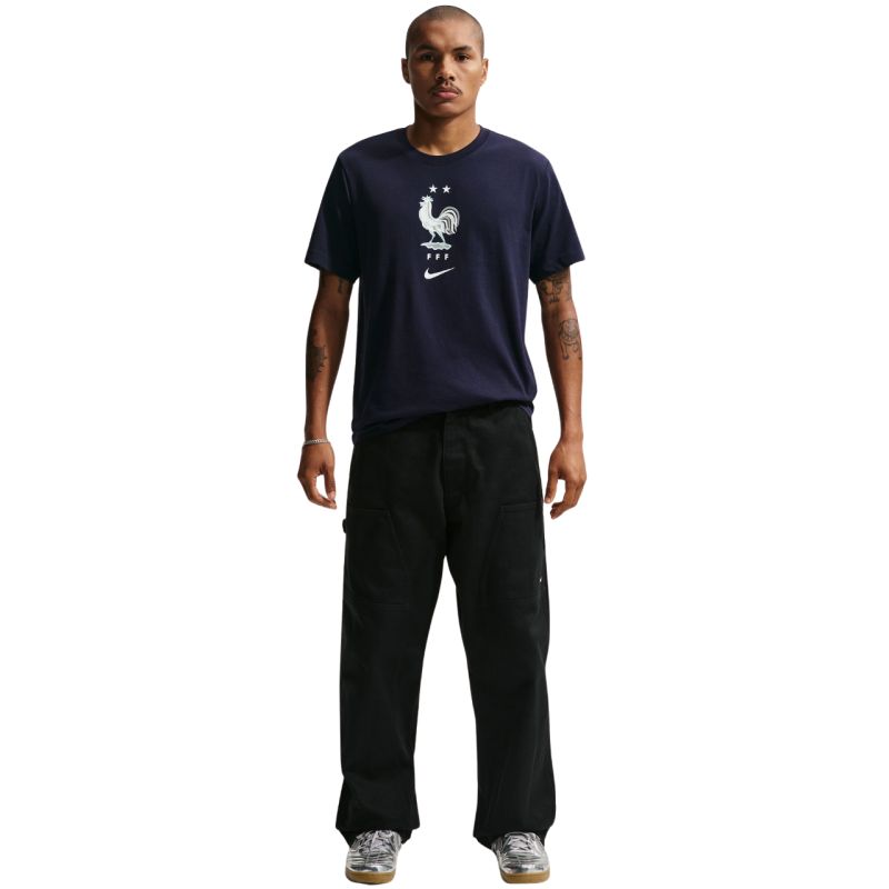 Koszulka męska Nike FFF Soccer granatowa IH2181 498 Koszulka piłkarska Nike FFF przeznaczona dla mężczyzn sprawdzi się na co dzień. Wykonana w całości z bawełny. Standardowy krój. Materiał: 100% bawełna