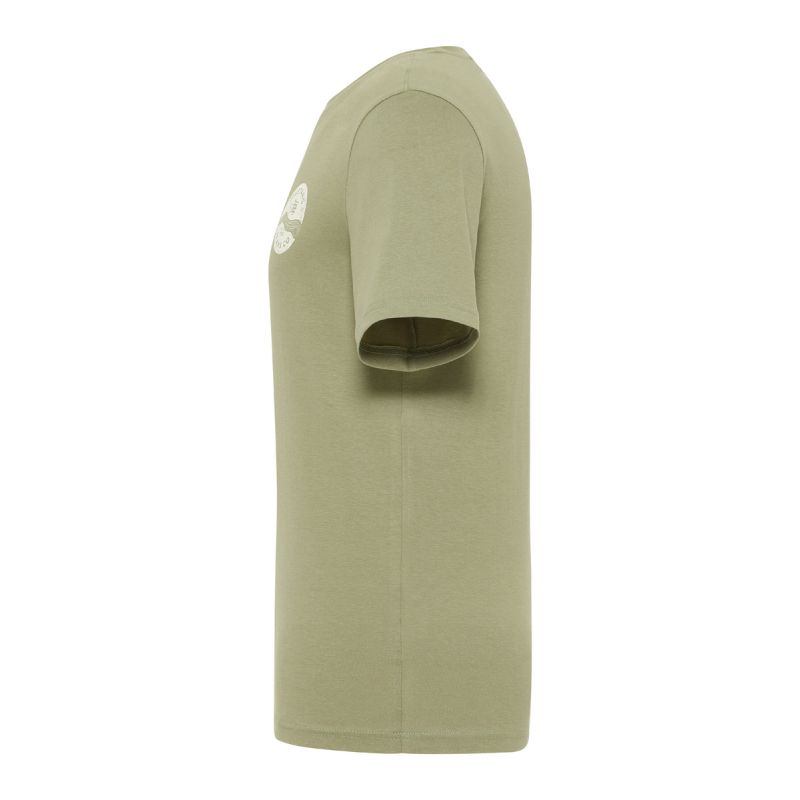 - T-shirt Mustang, obowiązkowy dla fanów marki, ma nadruk z etykietą na piersi. Świetnie komponuje się więc z stylizacjami z jeansami i sneakersami.