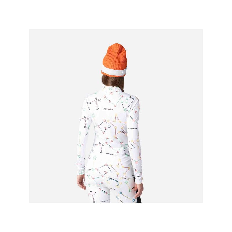 Damska bluzka Rossignol Saturn przynosi kosmiczną energię do Twojego stylu na stoku. Zainspirowana przestrzenią kosmiczną i stworzona w oparciu o kreatywną wizję francuskiego projektanta mody, Jean-Charlesa de Castelbajaca, ożywia Twój wygląd dzięki konstelacji barw.