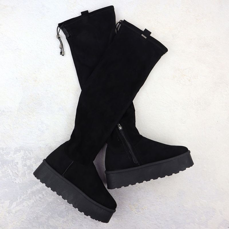 Kozaki damskie na platformie zamszowe czarne Big Star SS274264