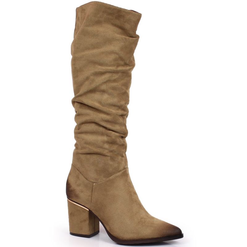 Kozaki oficerki na słupku Potocki W WOL109B beżowe
