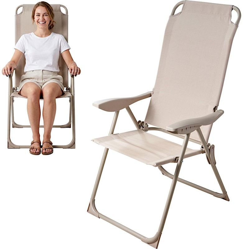 KRZESŁO FOTEL TURYSTYCZNE Z PODŁOKIETNIKAMI SKŁADANE BEŻOWE REDCLIFFS