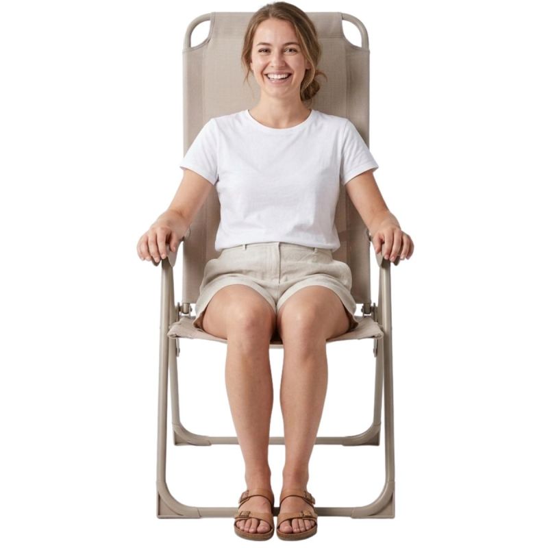 4. KRZESŁO FOTEL TURYSTYCZNE Z PODŁOKIETNIKAMI SKŁADANE BEŻOWE REDCLIFFS