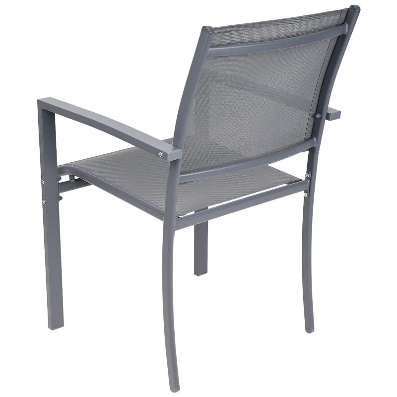 Krzesła ogrodowe wykonano z trwałego materiału Textilene, który doskonale sprawdzi się na zewnątrz. Jest odporny na warunki atmosferyczne, przepuszcza powietrze i łatwo się czyści.