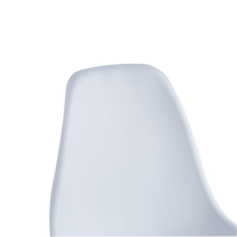 Opływowy kształt siedziska, nadaje mu delikatnego i miękkiego wyrazu. Wygodę siedzenia zapewnia odpowiednie wyprofilowanie. Tworzywo sztuczne o matowym wykończeniu gwarantuje odpowiednią wytrzymałość. 4 drewniane nogi, z rozpiętymi metalowymi prętami, nadają krzesłu lekko industrialny charakter.