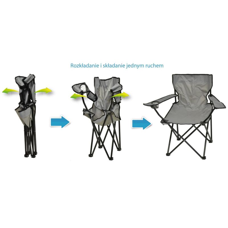 - Wymiary rozłożonego krzesła: 80 x 85 x 50 cm (wys. x szer. z podłokietnikami x gł.)