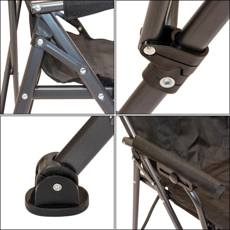 Dzięki składanej konstrukcji krzesło można łatwo zabrać ze sobą na camping, plażę czy wędkowanie. Po złożeniu zajmuje niewiele miejsca, co sprawia, że jest niezwykle praktyczne w transporcie.