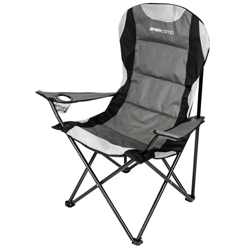 Wygoda zawsze pod ręką! KRZESŁO TURYSTYCZNE SKŁADANE LUX 60X60X105CM SZARO-CZARNE od Enero Camp i ciesz się relaksem gdziekolwiek jesteś!