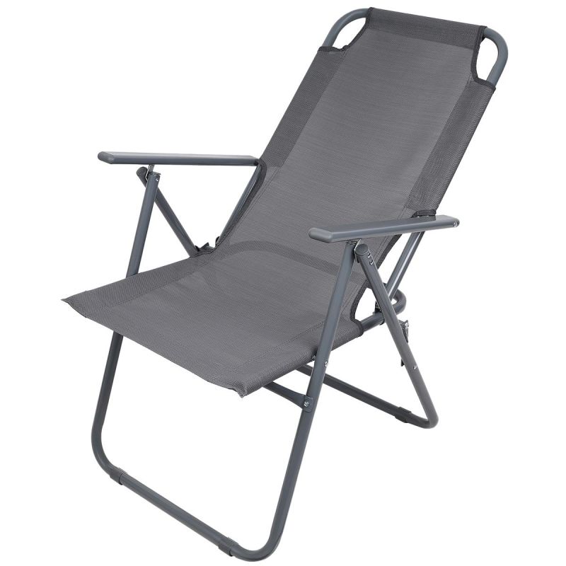 KRZESŁO TURYSTYCZNE Z PODŁOKIETNIKAMI 61x66x65-108CM SKŁADANE CIEMNO SZARE ENERO CAMP - II GATUNEK