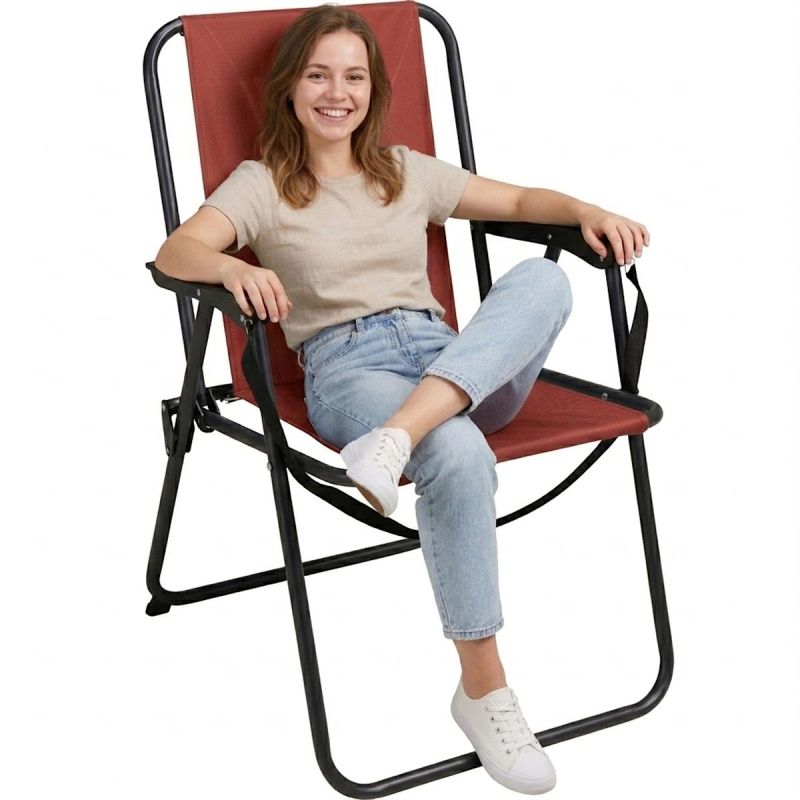 KRZESŁO TURYSTYCZNE Z PODŁOKIETNIKAMI SKŁADANE CZERWONY REDCLIFFS to jeden z podstawowych elementów wyposażenia podczas wyjazdów na kemping, biwak czy wypoczynek na plaży. Model REDCLIFFS z podłokietnikami został zaprojektowany z myślą o wygodzie i praktycznym użytkowaniu. Stabilny stalowy stelaż zapewnia trwałość konstrukcji, a składany mechanizm pozwala szybko przygotować krzesło do użycia lub schować je po zakończeniu wypoczynku.