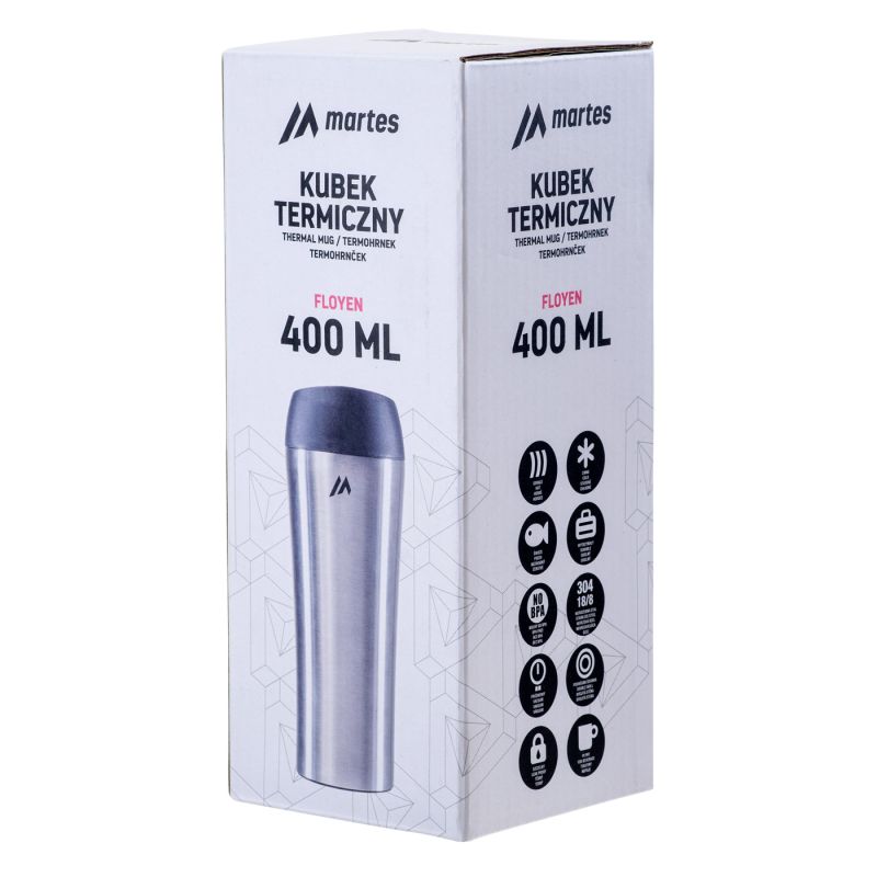 KUBEK TERMICZNY POJEMNOŚĆ: 400 ML SKŁAD MATERIAŁOWY: GŁÓWNY: STAL NIERDZEWNA NAKRĘTKA: PP, ABS, SILIKON SPECYFIKACJA: - IZOLACJA PRÓŻNIOWA - STAL NIERDZEWNA - SYSTEM SZYBKIEGO ZAMYKANIA - NIE PRZECIEKA - WOLNY OD BISFENOLU A