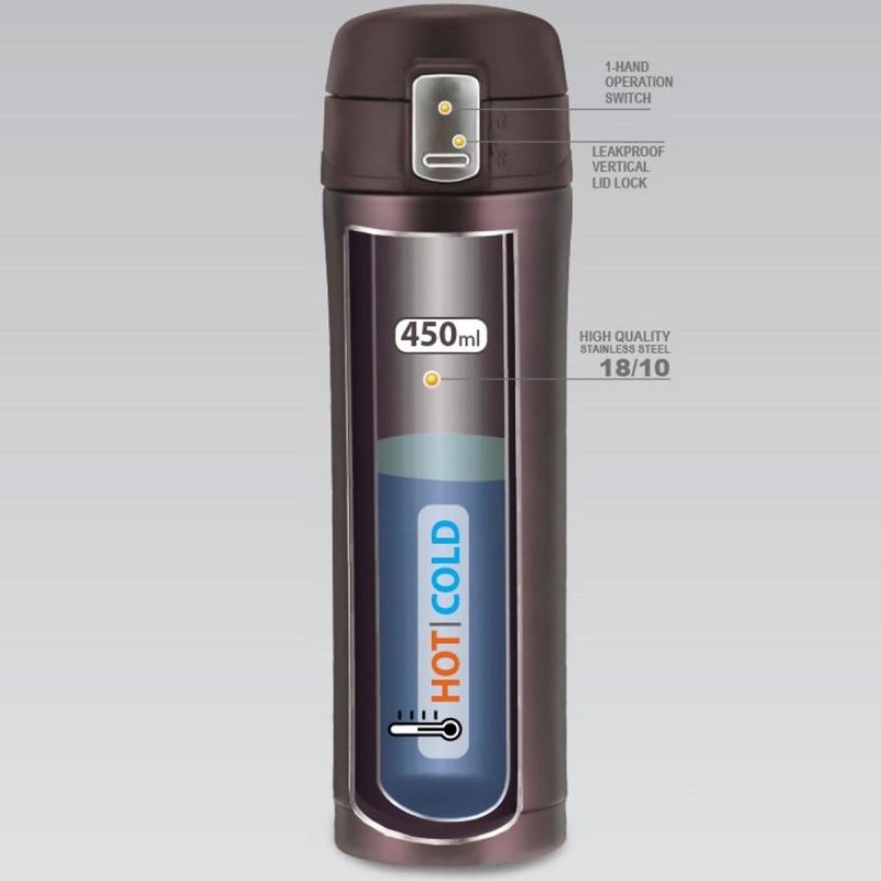 Wybierz kubek termiczny Maestro Collection 450 ml w kolorze brązowym – wykonany z najwyższej jakości stali nierdzewnej 18/10 z izolacją próżniową.