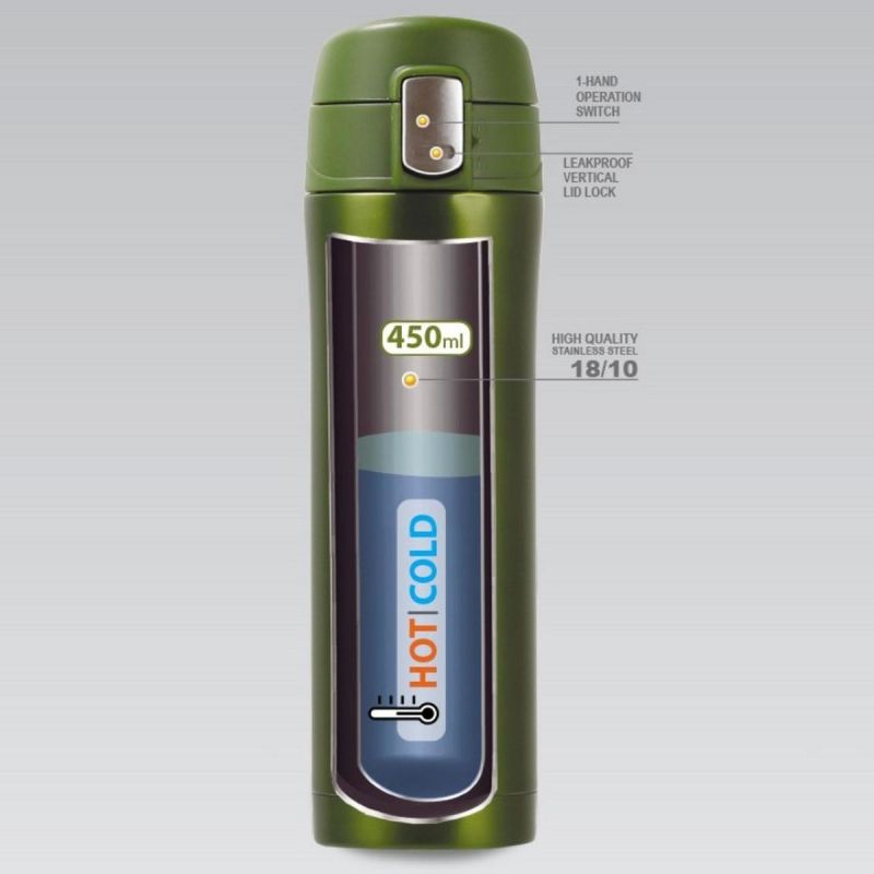 Postaw na KUBEK TERMICZNY COLLECTION 450 ML MAESTRO ZIELONY – wykonany z wysokiej jakości stali nierdzewnej 18/10 z podwójnymi ściankami i izolacją próżniową.