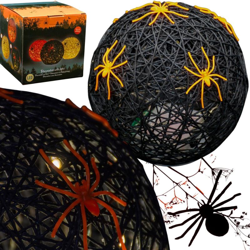 KULA DEKORACYJNA LAMPKA Z PAJĄKIEM LED 15CM HALLOWEEN CZARNY