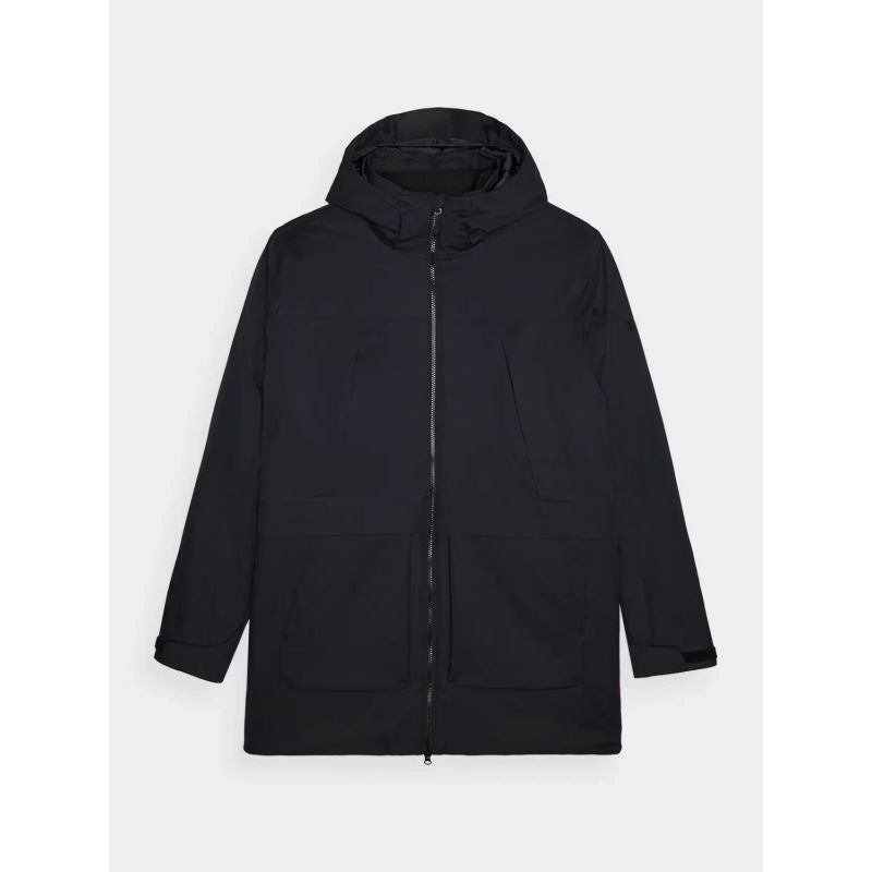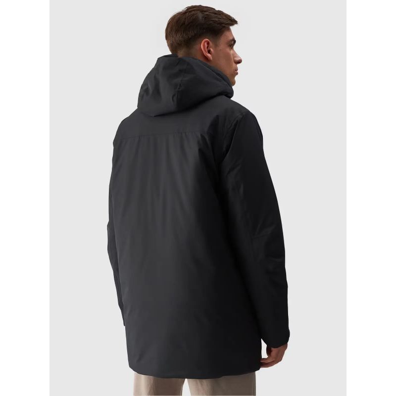 Parka przejściowa z kapturem męska idealnie sprawdzi się jako element casualowych, codziennych stylizacji, a dzięki wykorzystanym funkcjom i technologiom można ją nosić także w trakcie aktywności sportowych. Zapewni dobry komfort termiczny w chłodniejsze dni. Wykonana z materiału syntetycznego, który jest trwały i łatwy w pielęgnacji. Posiada krój regular, który wygodnie dopasowuje się do sylwetki oraz przedłużony krój sięgający za biodra.