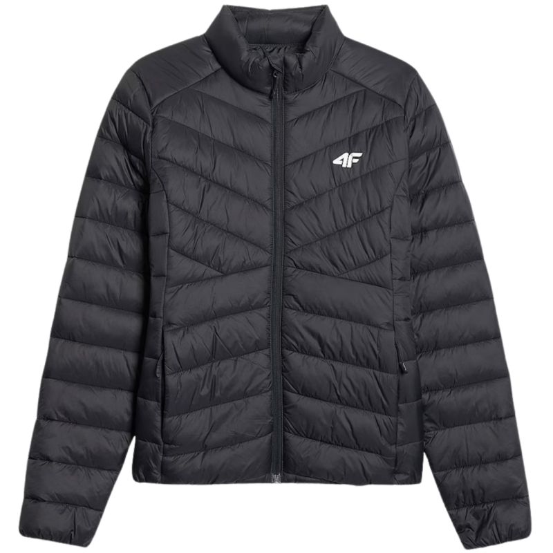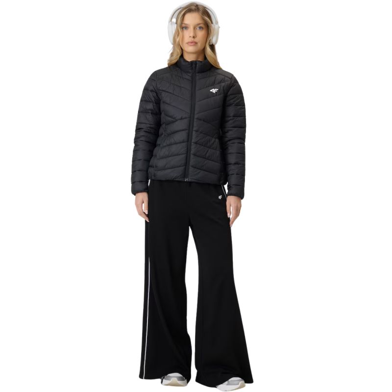 Kurtka damska 4F F0855 głęboka czerń 4FWSS26TDJAF0855 20S Lekka kurtka damska na chłodne dni z syntetycznym wypełnieniem, które zapewnia ciepło i dobrze radzi sobie z wilgocią. Hydrofobowa powłoka ogranicza przemakanie podczas lekkiego deszczu, a pikowana konstrukcja wspiera równomierne ocieplenie. Stójka chroni przed wiatrem, a dopasowany krój gwarantuje wygodę. Elastyczne mankiety i dół pomagają utrzymać ciepło, a kieszenie na zamek zwiększają funkcjonalność na co dzień. Dane techniczne:· Materiał główny: 100% poliester· Podszewka: 100% poliester· Wypełnienie: 100% poliester· Puch syntetyczny - zapewnia ciepło i lekkość, pozostając łatwy w pielęgnacji nawet po kontakcie· Hydrofobowa impregnacja - materiał zewnętrzny ogranicza wchłanianie wody, wspiera ochronę przed lekkim deszczem· Pikowana konstrukcja - równomiernie rozkłada ocieplenie i nadaje kurtce dynamiczny, sportowy wygląd· Stójka pod szyją - chroni przed podmuchami wiatru i zimnem· Taliowany krój - podkreśla kobiecą sylwetkę, zapewniając wygodę noszenia· 2 kieszenie na zamek - bezpieczne przechowywanie drobiazgów podczas codziennych aktywności· Mankiety i dół z elastyczną gumką - lepsze dopasowanie oraz ochrona przed chłodem i wiatrem