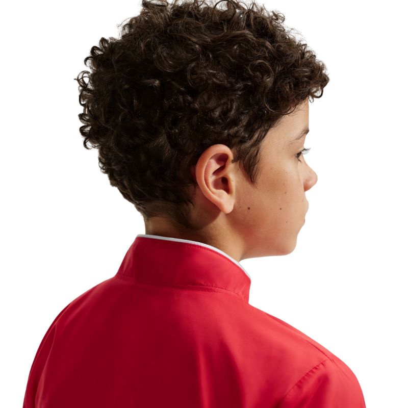 Kurtka dla dzieci Nike Park 26 Rain czerwona HM7269 657 Przeciwdeszczowa kurtka Nike dla dzieci ochroni Twoje dziecko przed niepogodą w czasie treningu. Wodoodporny materiał stanowi wygodną osłonę przed lekkim deszczem. Klasyczny krój sięgający do linii bioder. Zapinane kieszenie boczne. Stójka. Zamek na całej długości. Materiał: część główna: 100% poliester; podszewka: 100% poliester