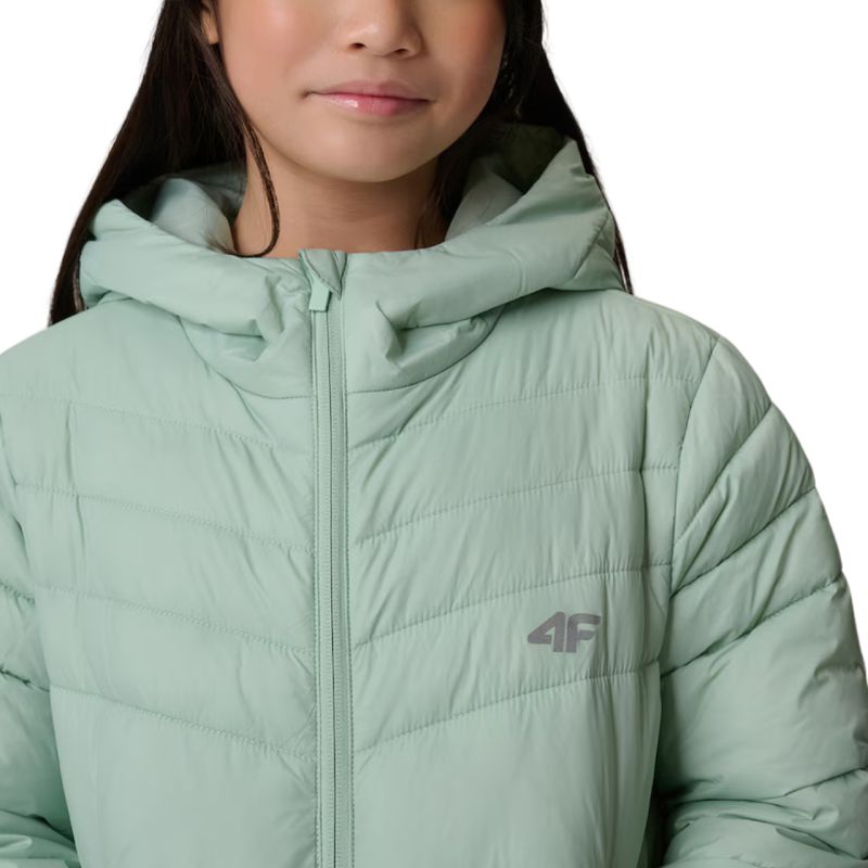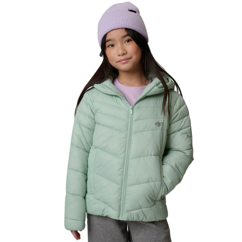 Kurtka dla dziewczynki 4F F0739 miętowa 4FJWSS26TDJAF0739 47S Lekka kurtka dla dziewczynki 4F na sezon przejściowy z technologią 4FWarm, zapewniającą komfort cieplny w chłodniejsze dni. Syntetyczne wypełnienie dobrze izoluje, a hydrofobowa powłoka ogranicza wchłanianie wilgoci. Model posiada kaptur, zamek błyskawiczny oraz praktyczne kieszenie. Regularny krój do bioder gwarantuje wygodę i swobodę ruchów na co dzień. Dane techniczne: · Materiał: 100% poliamid· Podszewka: 100% poliester· Wypełnienie: 100% poliester· Technologia 4FWarm - wspiera komfort cieplny podczas noszenia· Wypełnienie syntetyczne - zapewnia otulenie bez uczucia ciężaru· Hydrofobowa impregnacja - ogranicza wchłanianie wody przez materiał· Zintegrowany kaptur - osłania głowę przy wietrznej pogodzie· Kieszenie na zamek - pomagają bezpiecznie schować drobiazgi· Gładka podszewka - ułatwia zakładanie na inne warstwy· Krój regular do bioder - zapewnia wygodne ułożenie na co dzień