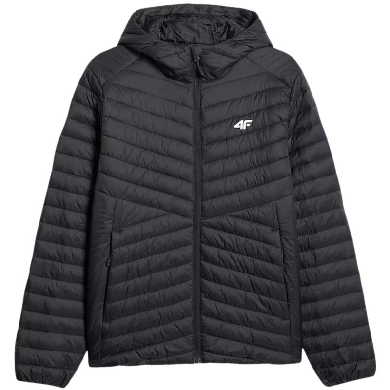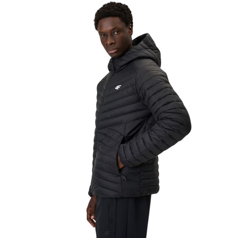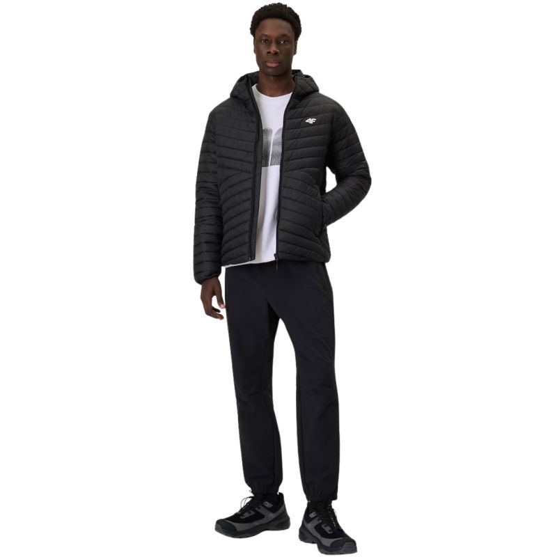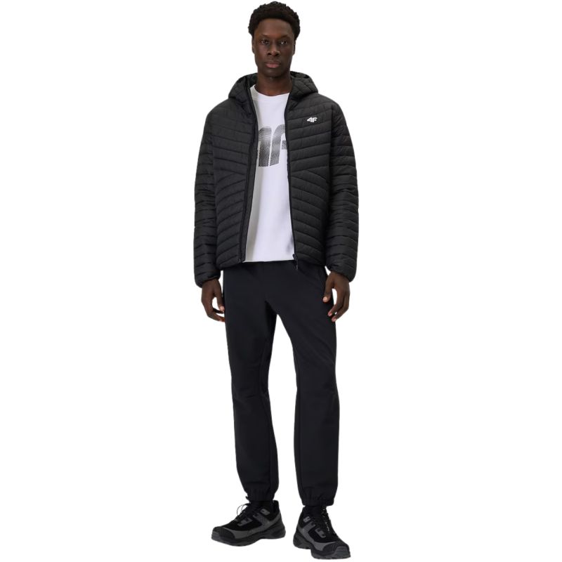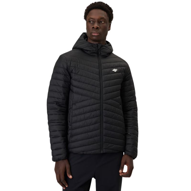 Kurtka męska 4F M0852 głęboka czerń 4FWSS26TDJAM0852 20S Męska kurtka z kapturem 4F, idealna na zmienną pogodę. Posiada hydrofobową powłokę chroniącą przed lekkim deszczem oraz lekką ocieplinę, która zapewnia komfort cieplny bez obciążenia. Regularny krój gwarantuje swobodę ruchów, a pikowanie dodaje nowoczesnego wyglądu. Kaptur chroni przed wiatrem, elastyczne mankiety zatrzymują ciepło, a kieszenie na zamek i wewnętrzna umożliwiają bezpieczne przechowywanie drobiazgów. Dane techniczne:· Materiał główny: 100% poliester· Podszewka: 100% poliester· Wypełnienie: 100% poliester· Hydrofobowa impregnacja - zabezpiecza materiał przed wchłanianiem wody i deszczem· Lekka ocieplina poliestrowa - zapewnia ciepło bez uczucia ciężaru i jest łatwa w pielęgnacji· Pikowanie w jodełkę i poziome - łączy oryginalny styl z lepszym rozkładem ocieplenia· Zintegrowany kaptur bez regulacji - chroni przed wiatrem i lekkim deszczem· Jednokierunkowy zamek główny - ułatwia szybkie zakładanie i zdejmowanie kurtki· 2 boczne kieszenie na zamek oraz kieszeń wewnętrzna na zamek - przechowują najważniejsze drobiazgi· Mankiety zakończone elastyczną gumką - pomagają utrzymać ciepło wewnątrz kurtki· Regularny krój - wygodnie układa się na sylwetce i nie ogranicza ruchów