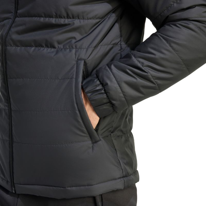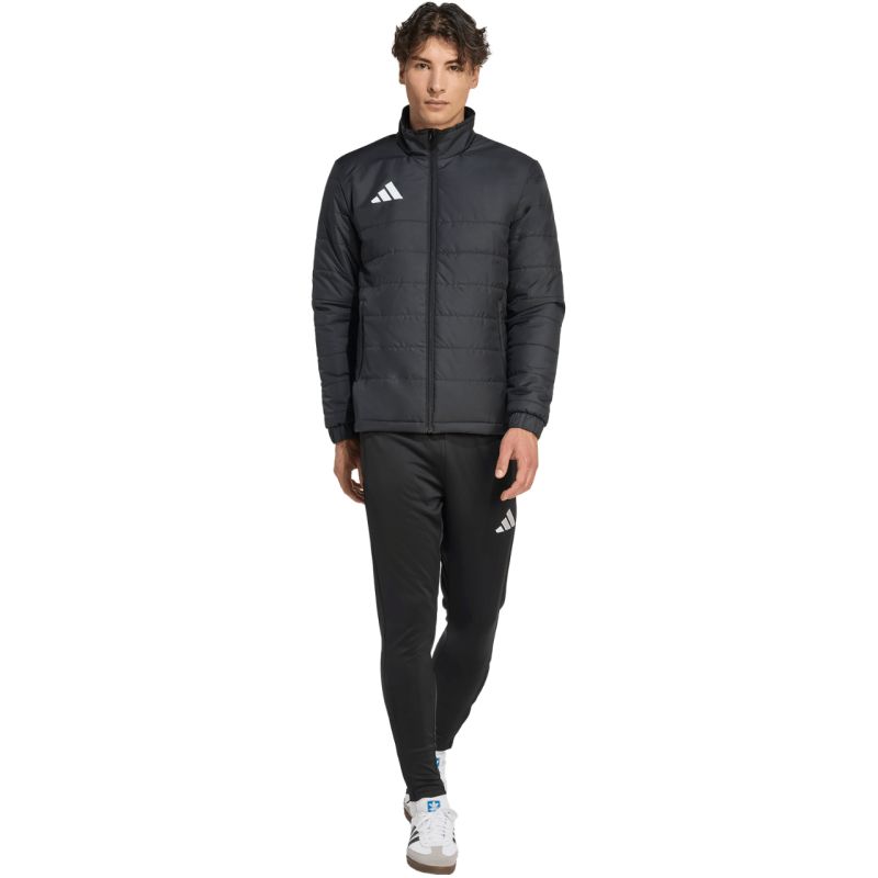 Kurtka męska adidas Entrada 26 Light czarna JZ9141 Kurtka męska adidas pozwoli prezentować piłkarski styl niezależnie od tego dokąd się wybierasz. Pikowana konstrukcja z równomiernie rozłożonym, syntetycznym wypełnieniem. Standardowy krój. Zamek na całej długości. Zapinane kieszenie boczne. Elastyczne gumki przy mankietach. Materiał: 100% poliester z recyklingu