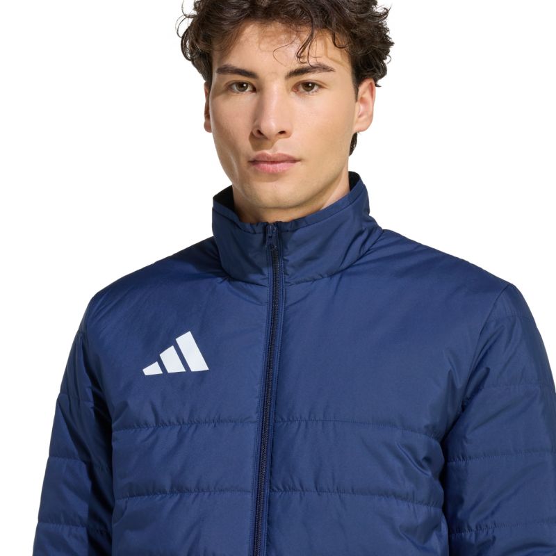 Kurtka męska adidas Entrada 26 Light granatowa JZ9142 Kurtka męska adidas pozwoli prezentować piłkarski styl niezależnie od tego dokąd się wybierasz. Pikowana konstrukcja z równomiernie rozłożonym, syntetycznym wypełnieniem. Standardowy krój. Zamek na całej długości. Zapinane kieszenie boczne. Elastyczne gumki przy mankietach. Materiał: 100% poliester z recyklingu