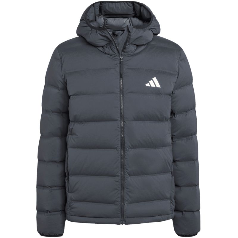 Kurtka męska adidas Helionic Climawarm Stretch Hooded Down czarna JN2114 Męska kurtka adidas tworzy izolację od zimna dzięki naturalnemu wypełnieniu, które zostało zamknięte w poziomych panelach. Regularny krój. Nieodpinany kaptur bez regulacji. Zamek na całej długości. Kieszenie na suwak. Izolacja termiczna i wodoodporność zapewniają optymalną ochronę warstw wierzchnich. Technologia Climawarm. Dane techniczne:· Warstwa zewnętrzna: 100% poliester z recyklingu· Warstwa wewnętrzna: 100% termoplastyczny poliuretan· Wypełnienie: 80% kaczy puch, 20% pierze (600 Fill Power)