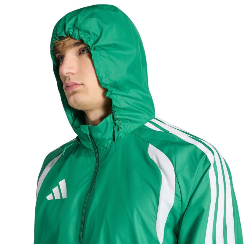 Kurtka męska adidas Tiro 26 League Windbreaker zielona JY9729 Męska wiatrówka adidas z linii Tiro sprawdzi się podczas treningów. Zamek na całej długości pozwala na szybkie ubieranie. System Clima365. Dwie kieszenie boczne na zamek. Kaptur z regulacją. Elastyczne mankiety. Standardowy krój. Materiał: 100 % poliester pochodzący z recyklingu