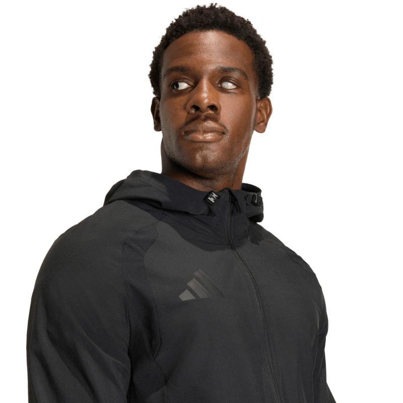 Kurtka męska adidas Tiro 26 Travel Windbreaker czarna JM5539 Męska wiatrówka inspirowana piłkarskim dziedzictwem marki adidas, łączy funkcjonalność z nowoczesnym stylem. Prosta, dopracowana sylwetka o dopasowanym kroju oraz ergonomiczne przeszycia sprawiają, że kurtka naturalnie układa się na sylwetce i swobodnie porusza razem z Tobą. Zamek na całej długości oraz regulowany kaptur. Lekka konstrukcja z gładkiego materiału. Subtelne detale z logo adidas. Kurtka sprawdzi się zarówno w drodze na trening, jak i w codziennych stylizacjach. Dane techniczne:· Materiał: 87% poliester pochodzący z recyklingu, 13% elastan· Dopasowany krój· Suwak· Elastyczne mankiety· Kaptur z zregulacją za pomocą stoperów· Zapinane kieszenie boczne· Dół obszyty elastyczną taśmą