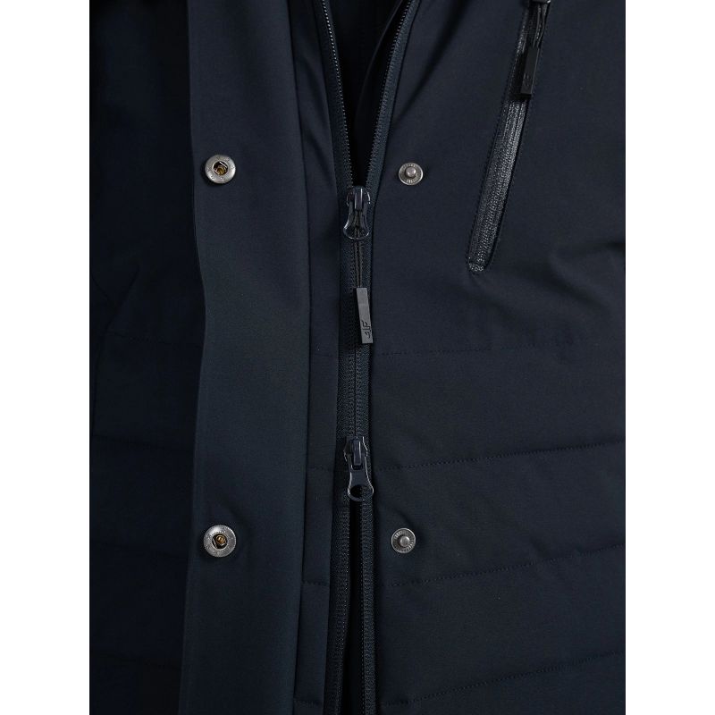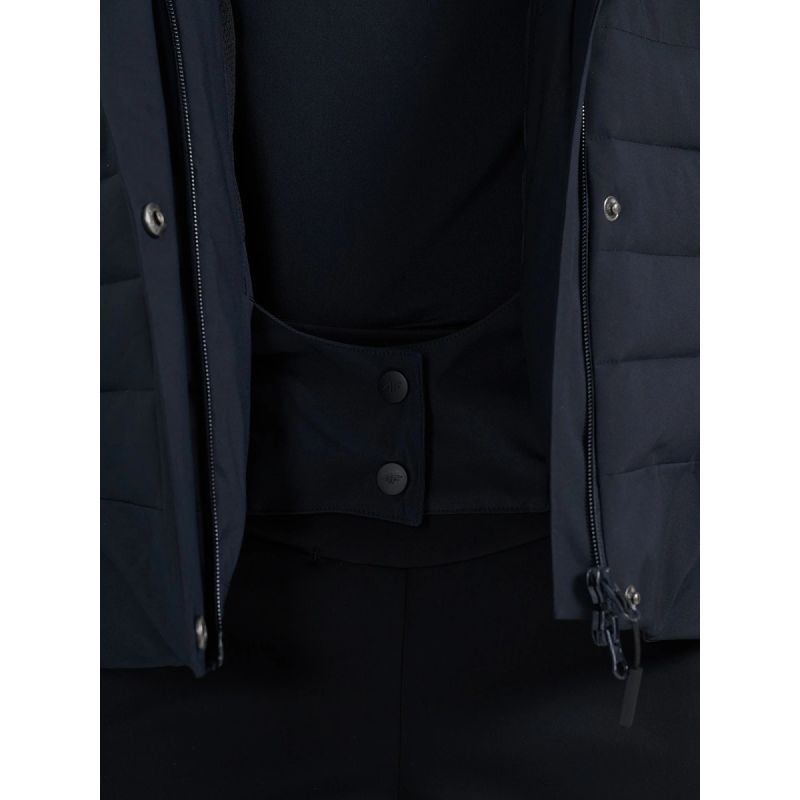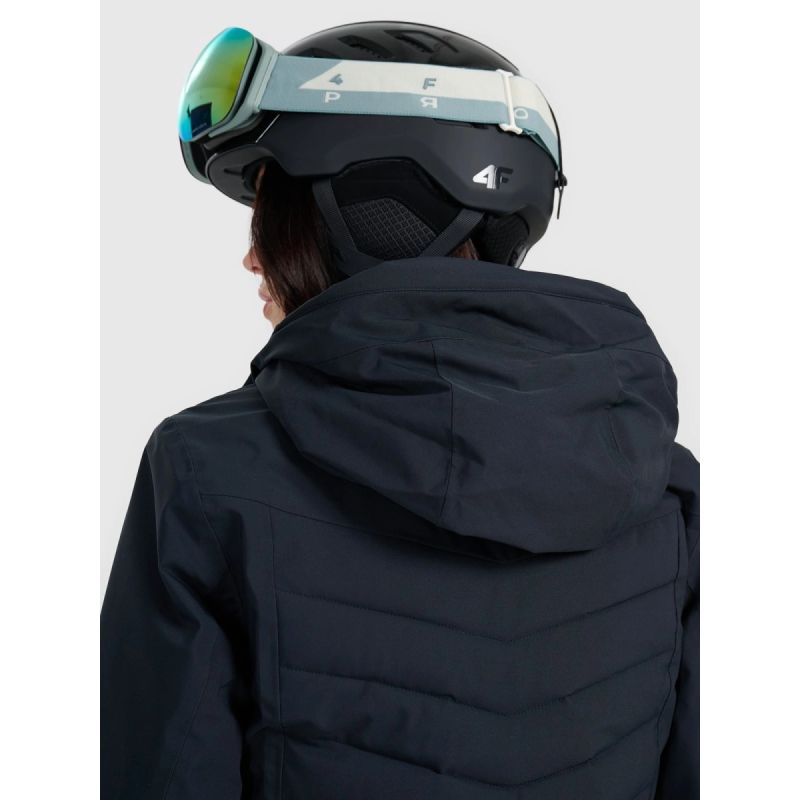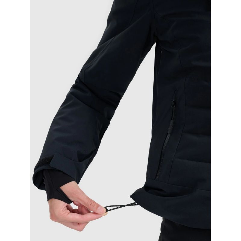 Zintegrowany kaptur z regulacją głębokości i odpinanym futerkiem pozwala dopasować ochronę do warunków pogodowych. Dwukierunkowy zamek z plisą na napy skutecznie osłania przed wiatrem i śniegiem, a system wentylacji pod pachami wspiera cyrkulację powietrza podczas intensywnej jazdy.