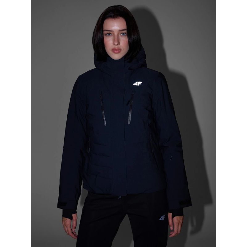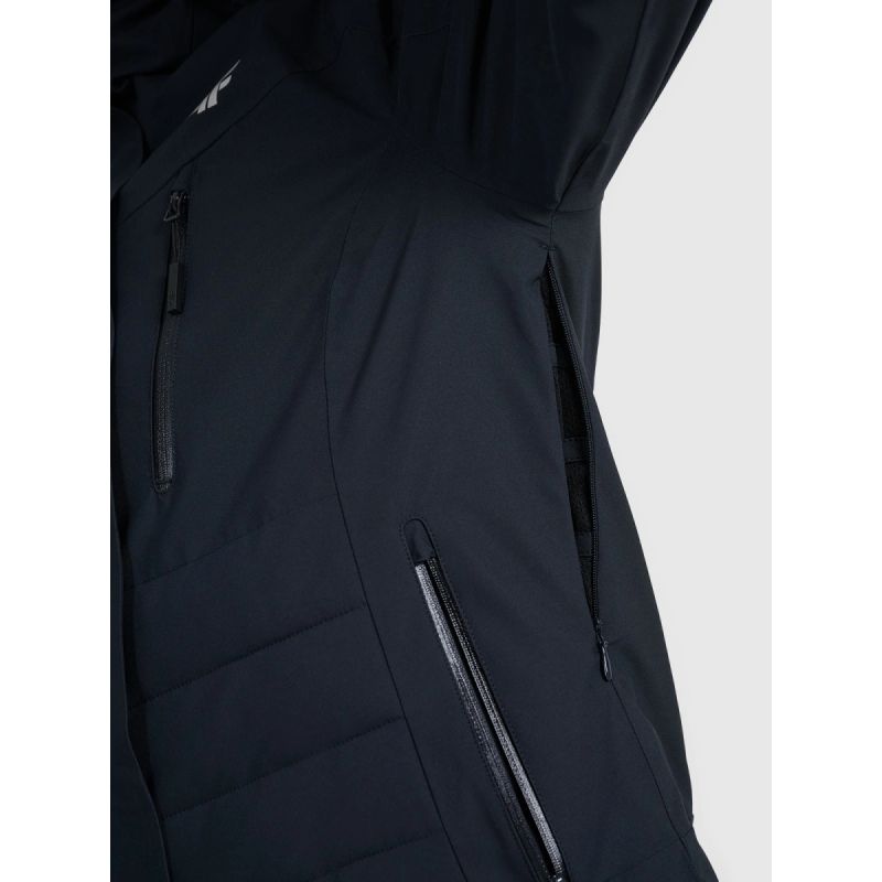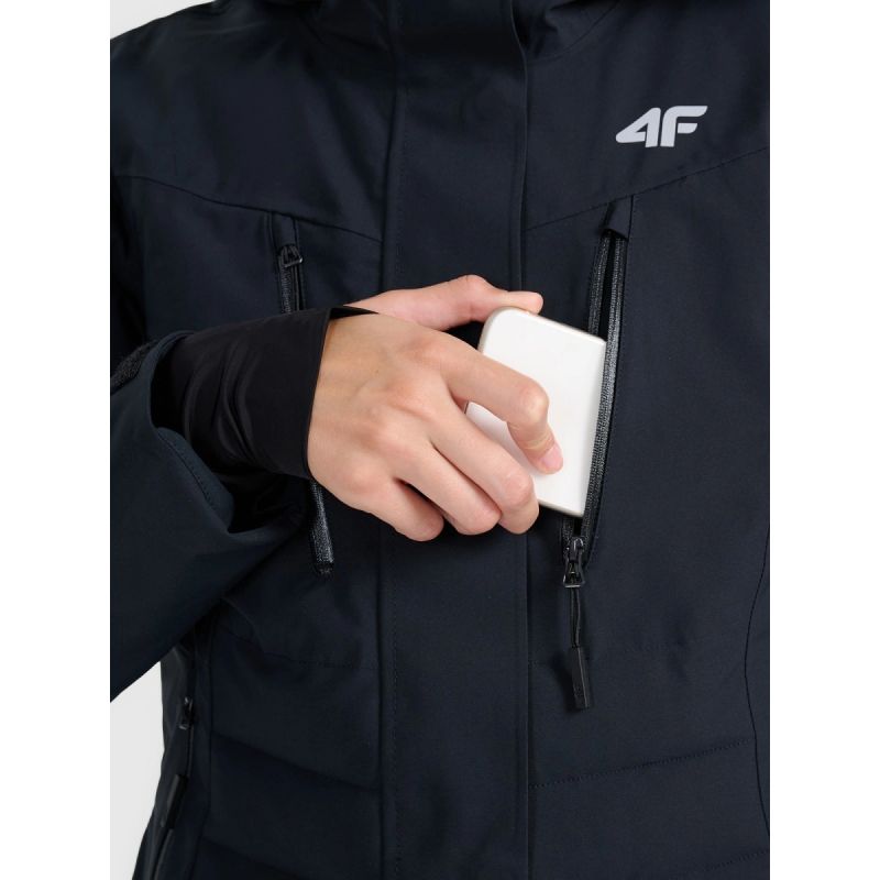 Pas śnieżny zapobiega przedostawaniu się śniegu do wnętrza, a przedłużone, regulowane mankiety oraz regulowany dół ze stoperami poprawiają dopasowanie. Bogaty zestaw kieszeni, w tym ski pass, kieszeń na gogle i wewnętrzna na zamek, zapewnia wygodne przechowywanie, a elementy odblaskowe zwiększają bezpieczeństwo po zmroku. Krój slim podkreśla sylwetkę i nie ogranicza swobody ruchów.