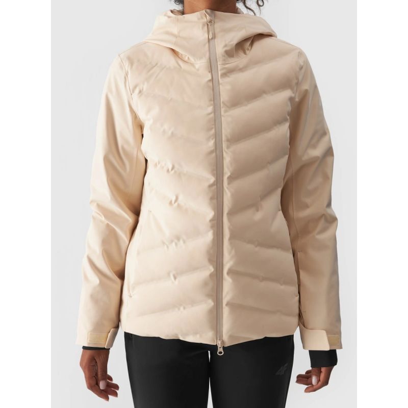 Kurtka narciarska damska z kapturem została zaprojektowana z myślą o sportowych aktywnościach o umiarkowanej intensywności oraz codziennym użytkowaniu w zimowych warunkach. Krój regular wygodnie dopasowuje się do sylwetki, a zwiększona objętość sprawia, że kurtka stanowi skuteczną warstwę izolacyjną podczas chłodnych i zimnych dni.