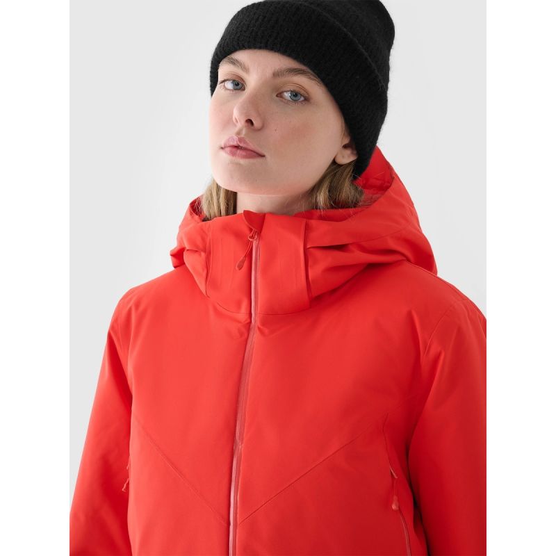 Kurtka narciarska z kapturem damska została zaprojektowana z myślą o zimowych aktywnościach wymagających najwyższego poziomu ochrony przed zimnem, wiatrem i wilgocią podczas długich godzin spędzanych na stoku. Regularny krój wygodnie dopasowuje się do sylwetki, a standardowa długość do bioder oraz zwiększona objętość zapewniają skuteczną izolację cieplną w chłodne i mroźne dni.