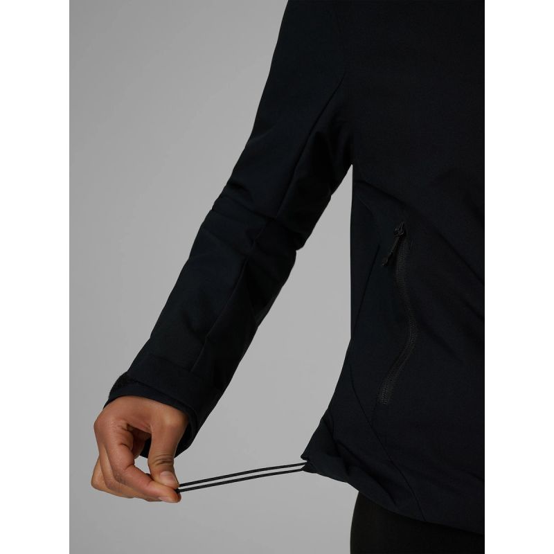 Wnętrze kurtki uzupełnia podszewka z siatki, która poprawia przepływ powietrza i zwiększa komfort podczas ruchu. Kaptur z regulacją pozwala lepiej dopasować osłonę do warunków, a rzepy przy mankietach i ściągacz u dołu pomagają ograniczyć podwiewanie chłodu.