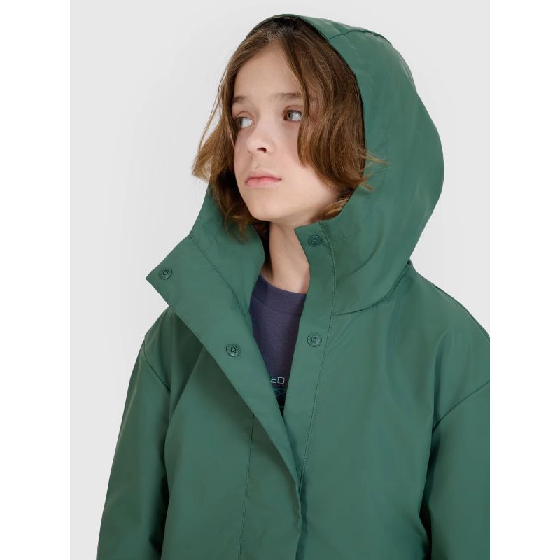 Kurtka przejściowa z kapturemto świetny wybór na cieplejsze dni, zapewniając komfort termiczny w miejskich oraz sportowych stylizacjach. Wykonana z trwałego materiału syntetycznego, jest łatwa w pielęgnacji, a krój regular dopasowuje się do sylwetki, zapewniając wygodę i swobodę ruchów.