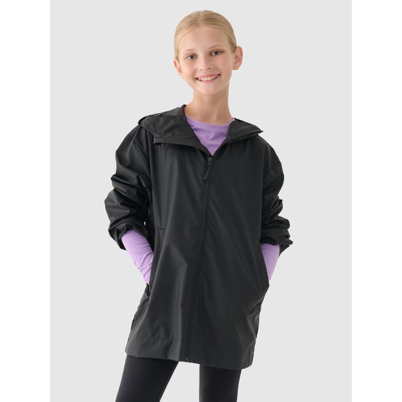 Dziecięca kurtka przejściowa jest wyposażona w zintegrowany kaptur bez regulacji. Szyję osłania wysoki kołnierz, który dodatkowo zabezpieczy przed chłodem i wiatrem. Po bokach znajdują się 2 kieszenie otwarte. Kurtka na co dzień dziecięca jest zapinana na jednokierunkowy zamek główny z wewnętrzną plisą przeciwwiatrową, która ogranicza przenikanie chłodu do wnętrza kurtki.
