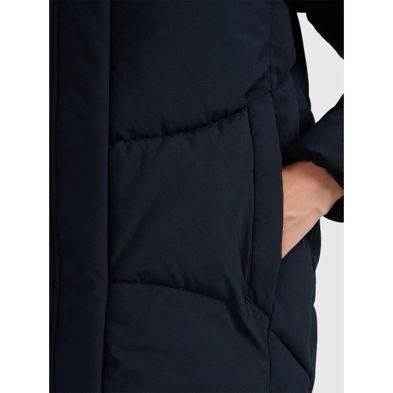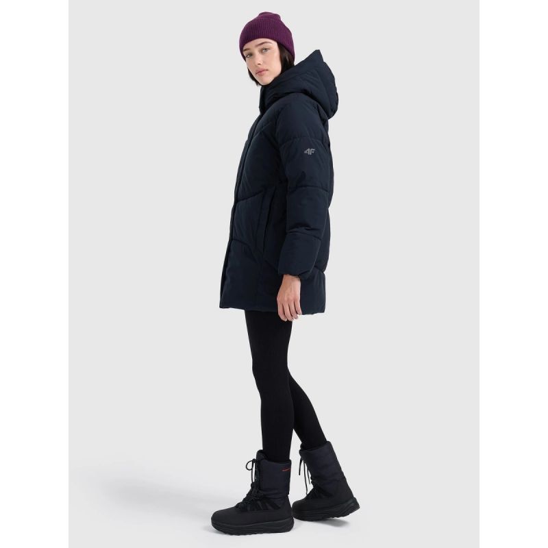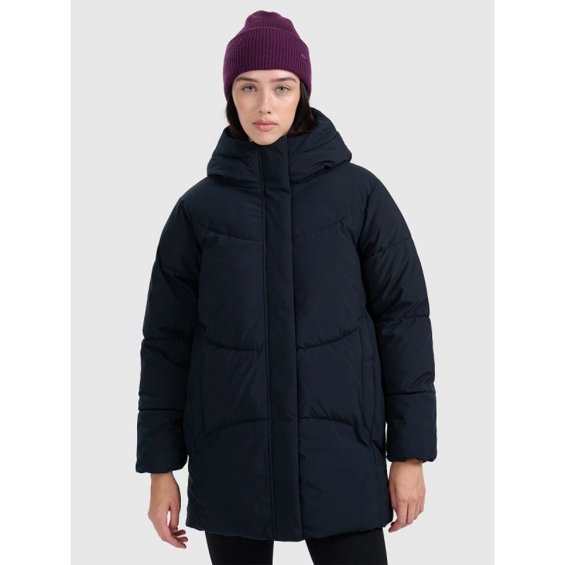 Hydrofobowa powłoka skutecznie ogranicza wchłanianie wilgoci i zwiększa trwałość materiału. Ocieplina poliestrowa zapewnia ciepło bez zbędnego obciążenia, a jej pielęgnacja jest prosta i szybka. Zintegrowany kaptur, dwukierunkowy zamek oraz funkcjonalne kieszenie zwiększają wygodę podczas codziennego użytkowania. Regulacja w talii poprawia dopasowanie i komfort cieplny, a luźny krój oversize gwarantuje swobodę ruchów.