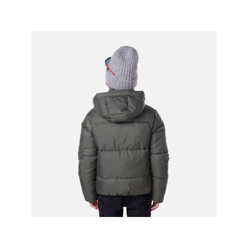 Juniorska kurtka Rossignol Puffy Jacket to doskonały wybór na chłodniejsze dni, zapewniająca ciepło dzięki syntetycznej izolacji Polydown. Luźny krój zapewnia swobodę noszenia, a niepowtarzalny znaczek koguta Rossignol podkreśla Twoją miłość do gór. Wygodny, odpinany kaptur miło otula i chroni przed wiatrem, w razie potrzeby można go odpiąć od kurtki i zastąpić czapką.
