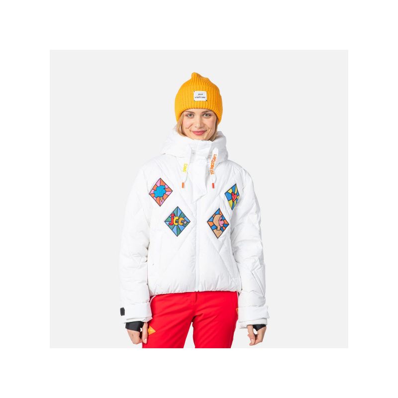 Damska kurtka narciarska Rossignol Lumy Down Bomber to stylowa i kolorowa propozycja, która powstała dzięki wyobraźni francuskiego projektanta mody, Jean-Charlesa de Castelbajaca. Radosne barwy i grafiki inspirowane pop-artem ożywiają zimowy styl, a najwyższej jakości, ultralekka puchowa izolacja zapewnia niezrównane ciepło.