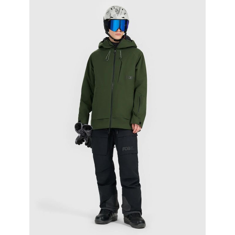Funkcjonalne kieszenie na piersi, gogle, ski pass i drobiazgi ułatwiają organizację na stoku. Profilowane łokcie oraz raglanowe rękawy wspierają naturalny zakres ruchów, a przedłużone mankiety z otworami na kciuki, regulowane mankiety zewnętrzne oraz pas przeciwśnieżny skutecznie chronią przed śniegiem i chłodem. Elementy odblaskowe zwiększają widoczność po zmroku.