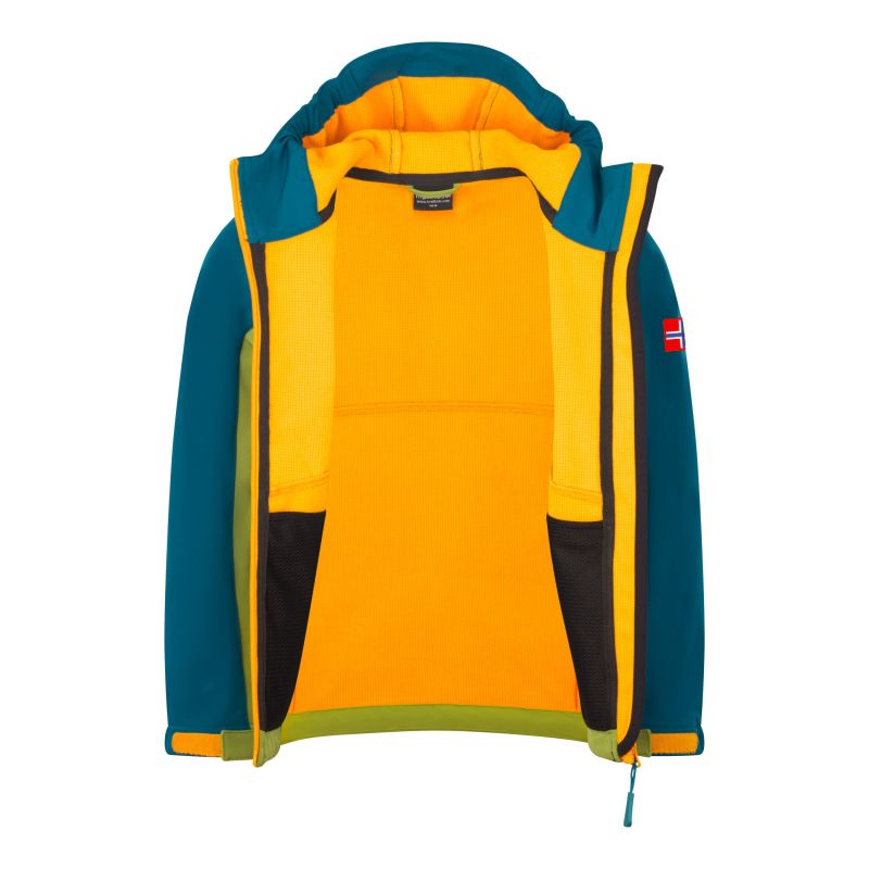 Kurtka Trollkids Kristiansand Softshell zielony gruszkowy/zielony lagunowy/zachód słońca na Saharze (320-360)