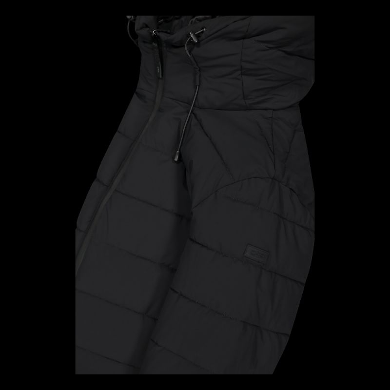 Kurtka zimowa wykonana z materiału Sorona Aura Flock, zapewnia doskonałą izolację cieplną i wodoodporność. Bezszwowa konstrukcja oraz stały kaptur chronią przed wiatrem.