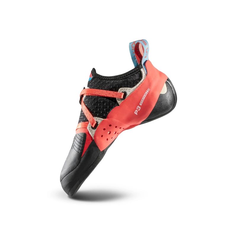 Agresywny, asymetryczny profil pozwala skoncentrować siłę na przedniej części stopy, co zwiększa precyzję podczas pracy na małych stopniach oraz w kieszeniach skalnych. Za utrzymanie charakterystycznego zakrzywionego kształtu odpowiada technologia P3 (Permanent Power Platform), która zachowuje właściwości techniczne buta nawet po długim czasie użytkowania.
