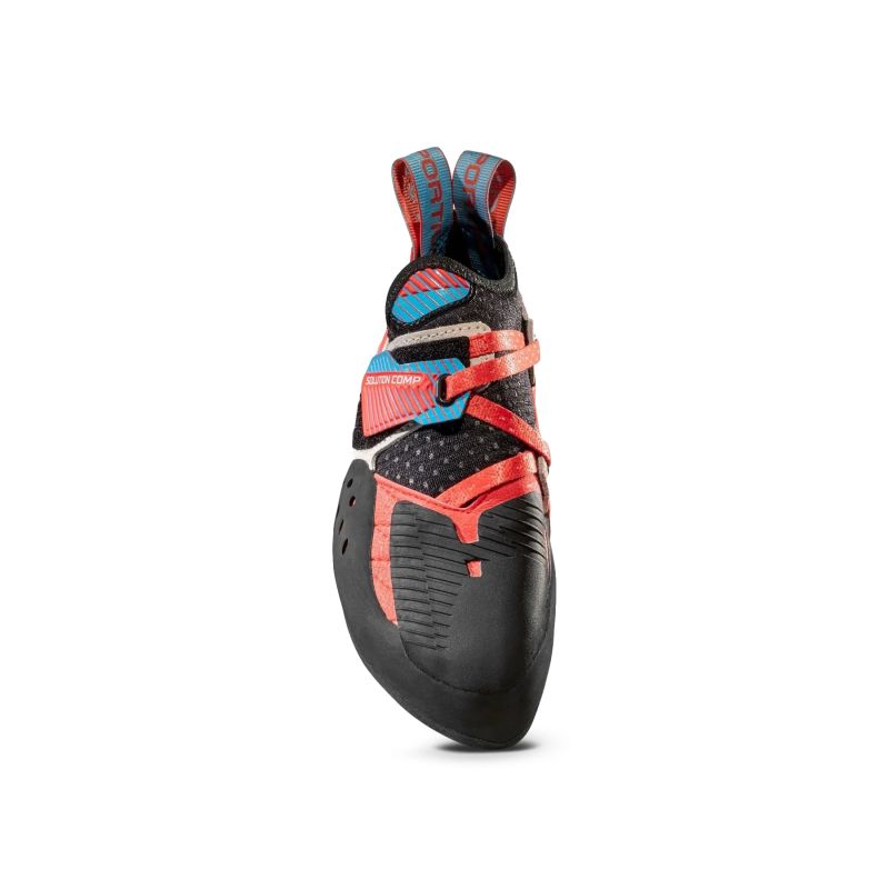 Zwiększona gumowa osłona w przedniej części buta ułatwia wykonywanie haczeń palcami (toe hook), a dopasowana konstrukcja pięty poprawia stabilność podczas haczeń piętą. Dzięki miękkiej i elastycznej konstrukcji model Solution Comp doskonale sprawdza się na nowoczesnych drogach wspinaczkowych z dużymi strukturami i wolumenami.