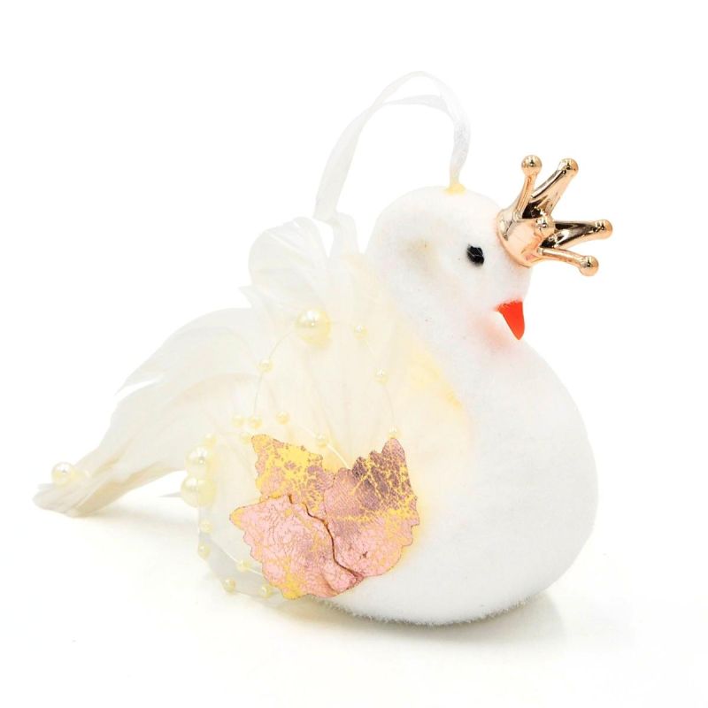 ŁABĘDŹ DEKORACYJNY WISZĄCY BOMBKA 17CM PERŁOWE SKRZYDŁA