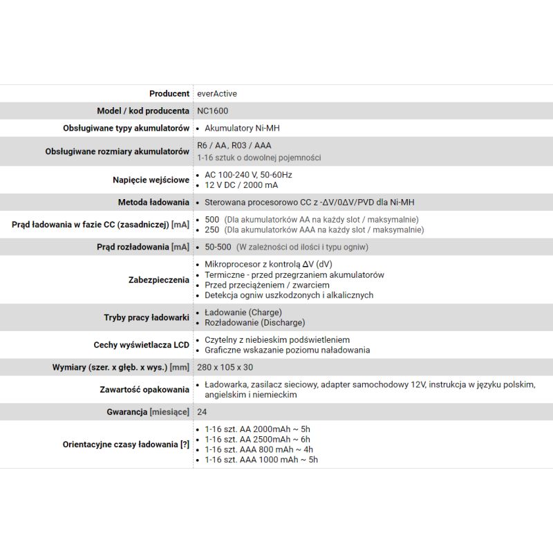 Liczba obsługiwanych baterii: 16